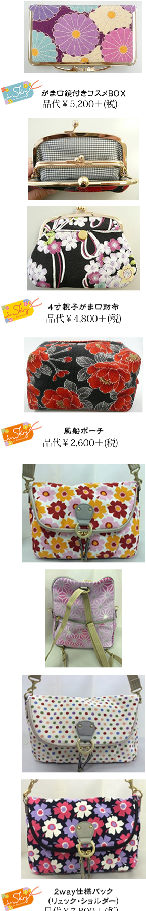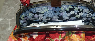 加賀染を裏地に使用したおしゃれな鞄です。気持ちも華やぐ鞄は、和・洋どちらのシチュエーションでも似合う商品です。